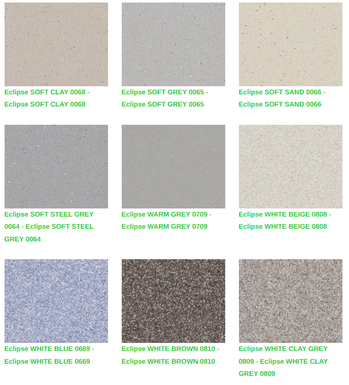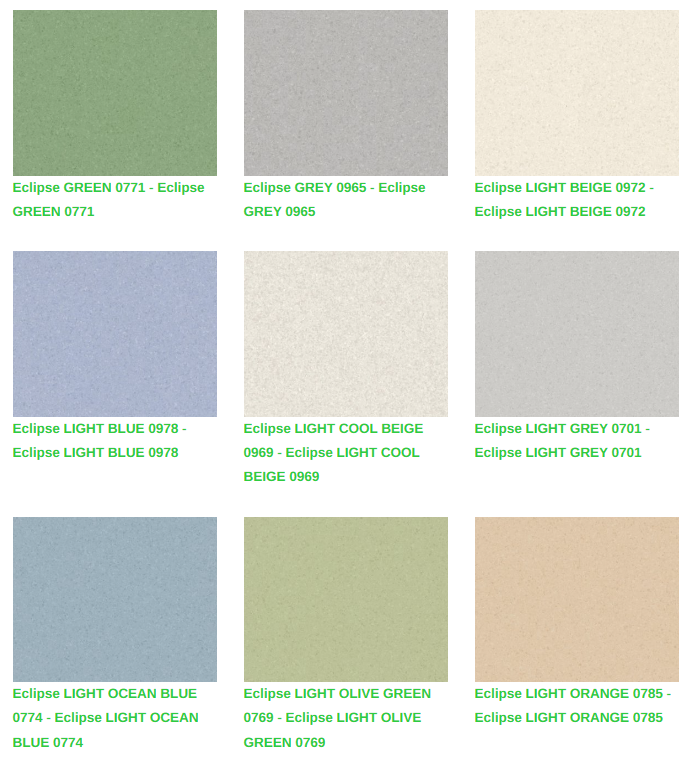 Eclipse Premium homojen vinil zeminler, eğitim ve sağlık tesisleri gibi yoğun trafikli alan uygulamaları için kalite, fonksiyonel ihtiyaçlar ve düşük bakım maliyetlerini bir araya getirir. Tescilli XR yüzey işlemimiz, gelişmiş koruma ve daha kolay bakım yapılmasını garanti eder. Eclipse Premium, Premium çok çözümlü ailesinin diğer ürünleri ve aksesuarları ile koordine edilen yeni Spectra serisi ile 66 çekici renkten oluşan doğrusal olmayan desen paletinde mevcuttur